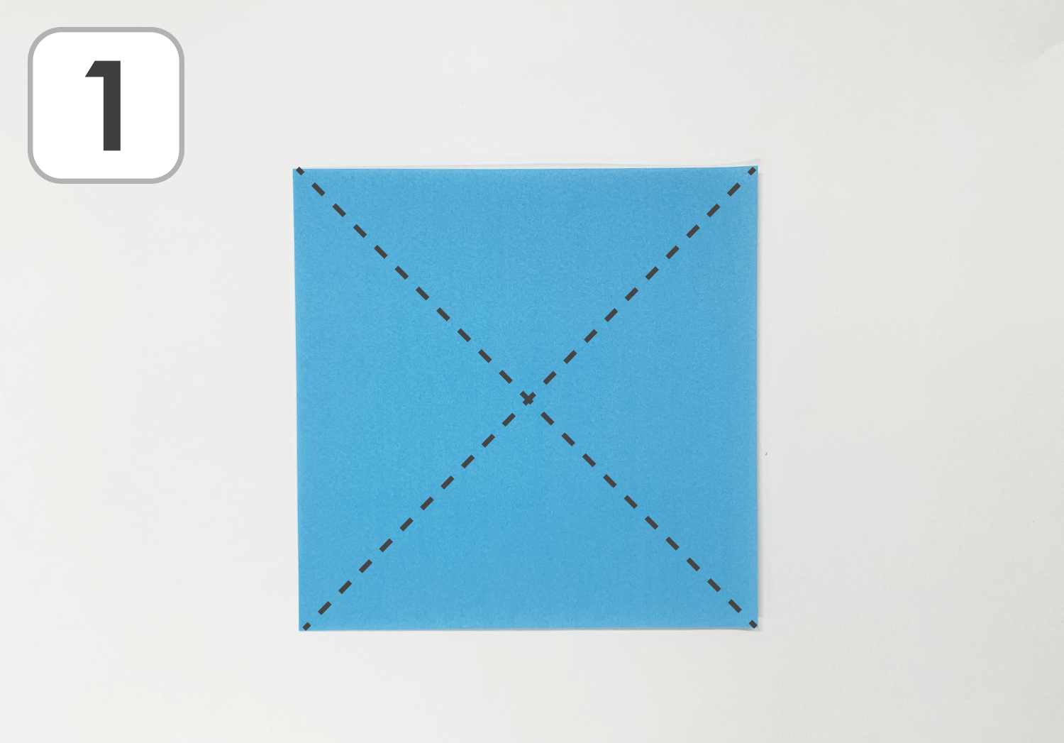 ①15㎝×15㎝の水色のおりがみを1枚用意します。