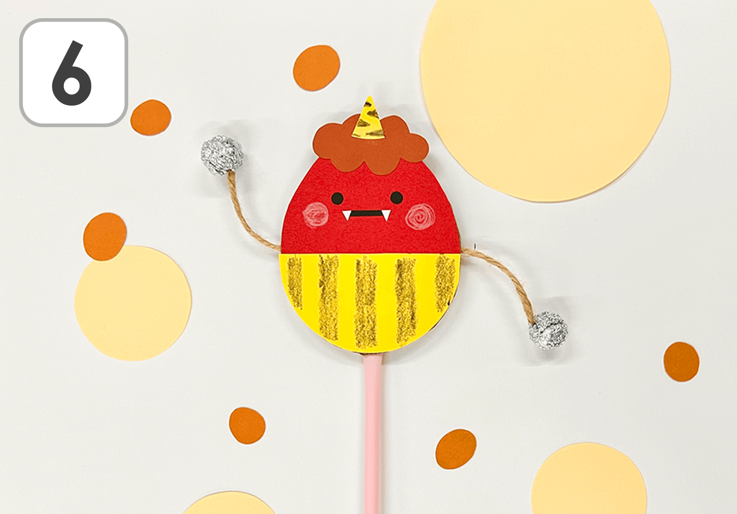 伝統的なでんでん太鼓を鬼の形にアレンジした作って遊べる製作「鬼のでんでん太鼓」をご紹介します。