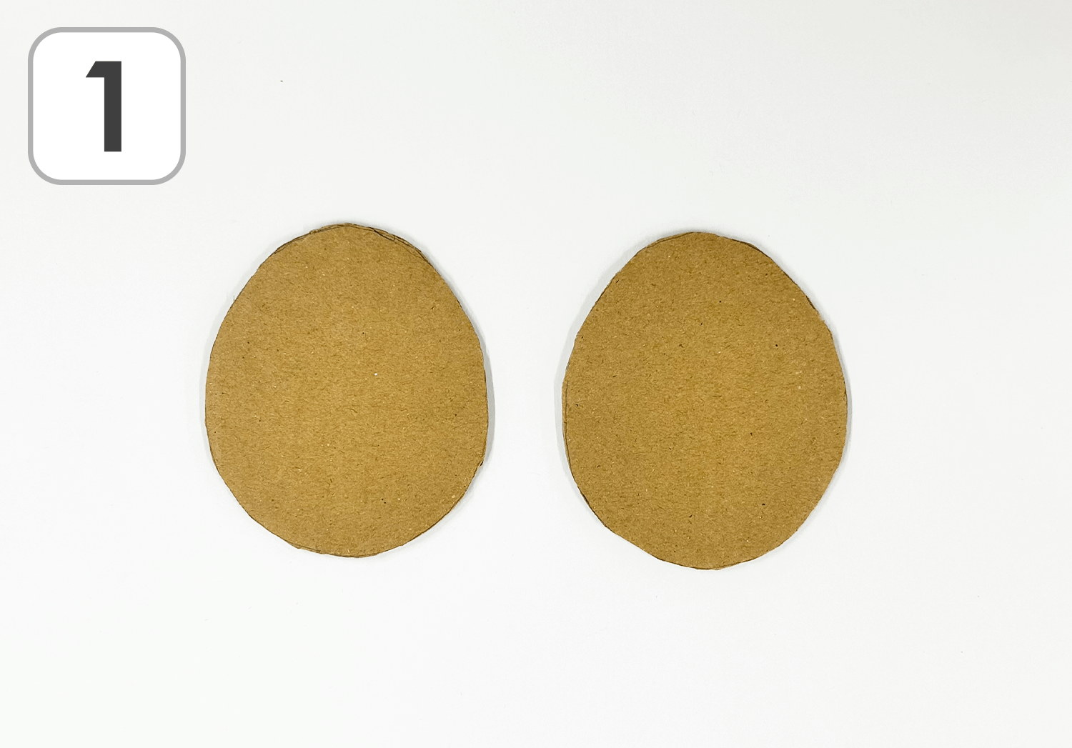 ①ダンボールを切って、卵型のパーツを2枚作ります。