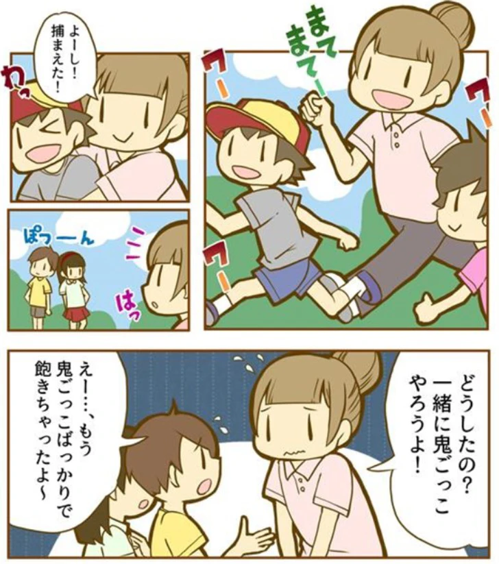 鬼ごっこをしていると、仲の良い子だけで盛り上がることもあります。本人達に悪気は無くても、仲間外れにされているように感じる子どももいるでしょう。