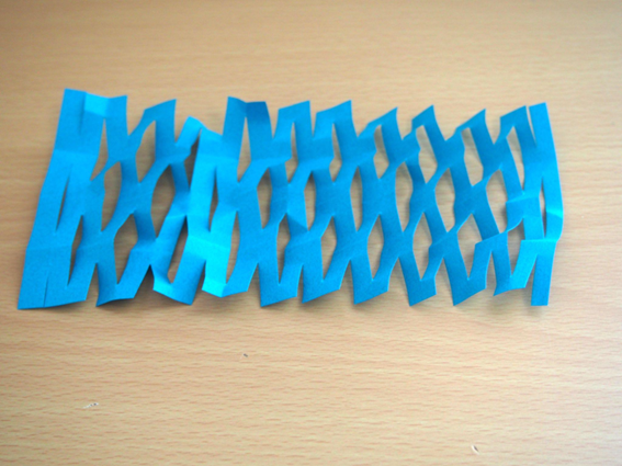 七夕といえば天の川!細長く折った折り紙の両脇から、切り込みを入れて広げます。折り紙を広げるときは、誤ってちぎってしまわないように力加減に注意が必要です。年長クラスでも難しく感じる可能性があるため、大人が手を添えても良いでしょう。