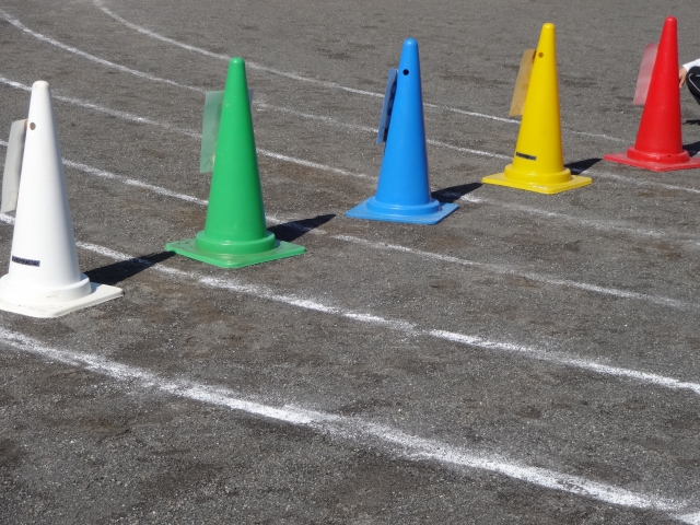 1. パラバルーンを左手で持ち体を進行方向に向ける