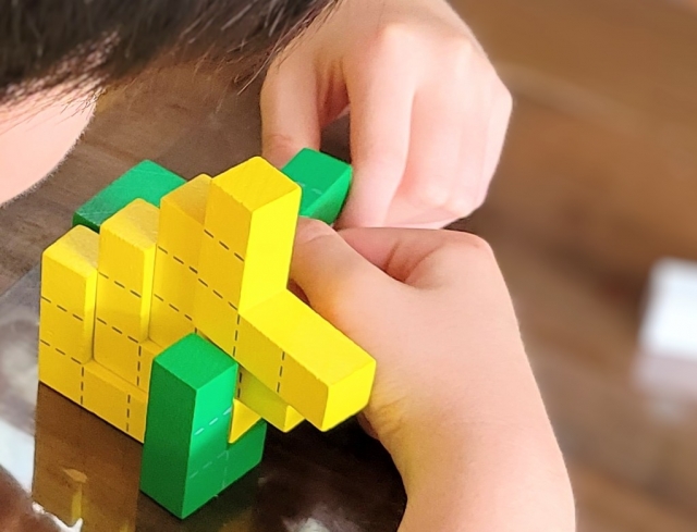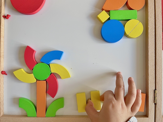 さまざまな形を組み合わせていくうちに、図形への理解が深まります。「三角形のブロックを2つ合わせると四角形になる」など、遊びながら学びを得ます。また、積み木を同じ数だけ重ねたり、必要なパーツの数を数えたりするうちに数への理解も深められるといえるでしょう。