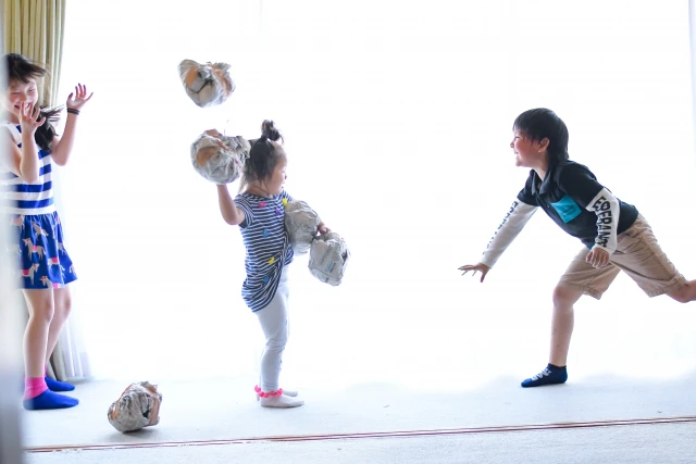 新聞紙遊びが終わった後の、ゲームの定番がお片付けゲームです。