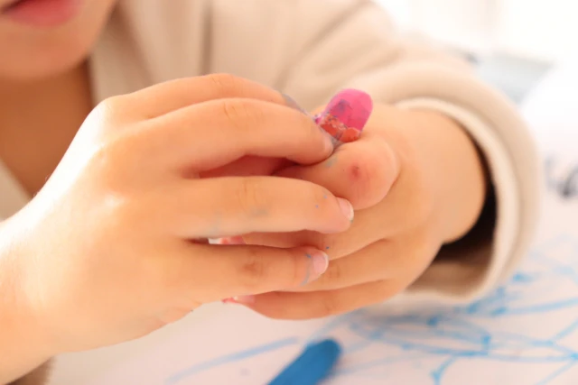 この時期に、でんぷんのりやはさみを使う機会を多く持つことで、指先の感覚や器用さを身につけることができます。