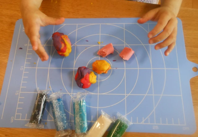 粘土を使ったやじろべえは、2歳児クラスの子どもでも製作できます。粘土と小枝があればすぐにできるので、午前中の戸外活動で拾った小枝を使って午後にやじろべえを作っても楽しそうですね。製作する際には子どもが枝で目を怪我するなどの怪我がないよう、椅子や床にしっかりと座って作業できるように配慮しましょう。