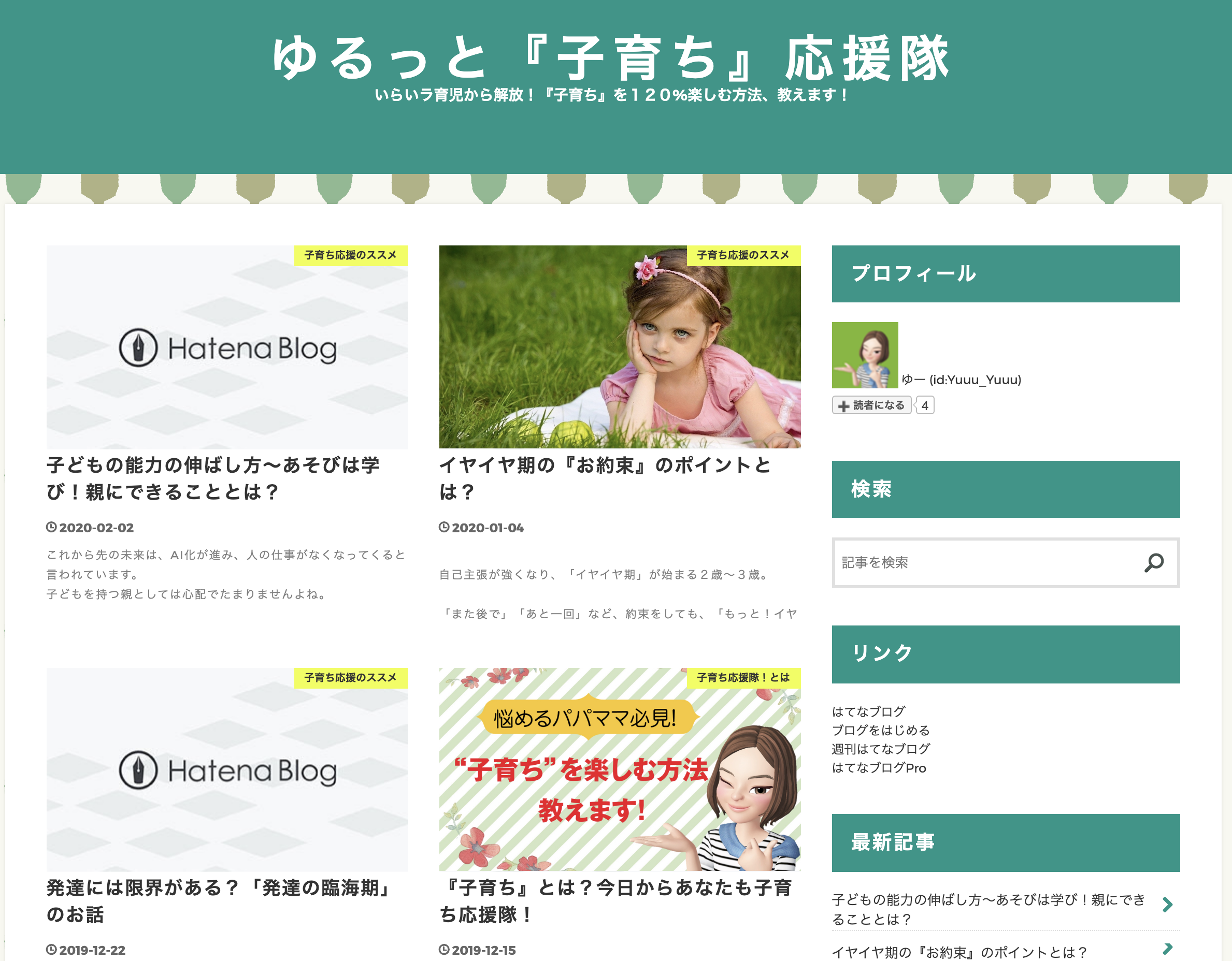 Yuuu(ゆー)さんは親が子どもを育てる『子育て』ではなく、子どもが育つのを見守る『子育ち』という視点でブログを発信されています。