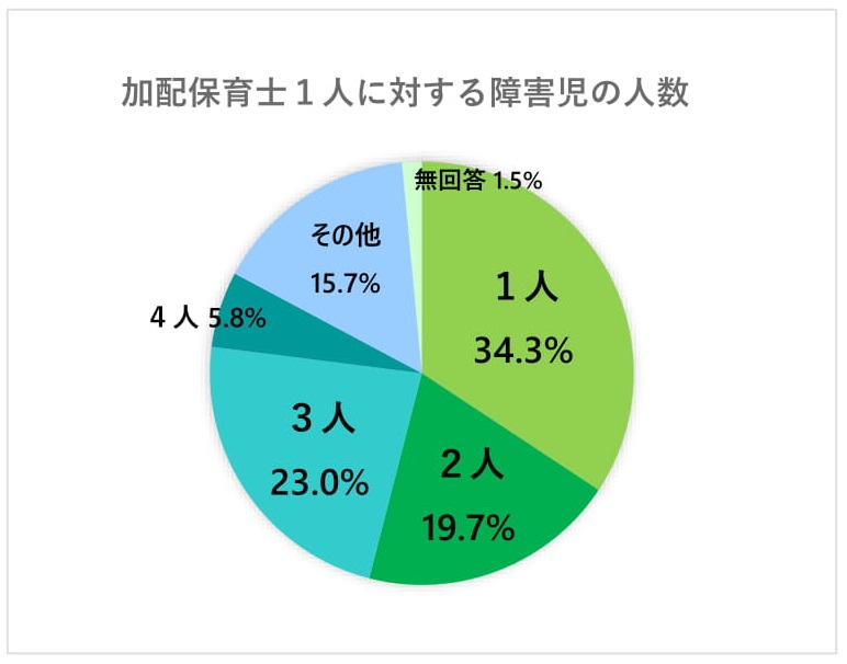 現在、加配の設置ついて国が定めた一律の基準はなく、対応は自治体ごとに異なります。みずほ情報総研が自治体を対象に行った調査によると、「障害児保育を行うための加配職員の配置基準を設けているか?」という質問に対して、1位「具体的な基準がない(42.5%)」、2位「障害の程度を問わず基準が一律(28%)」という結果になりました。