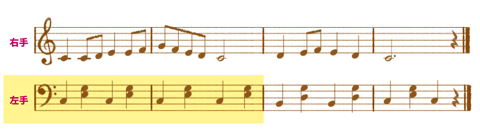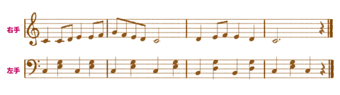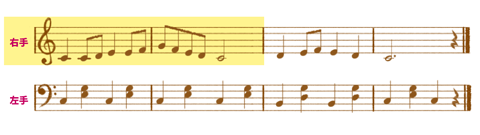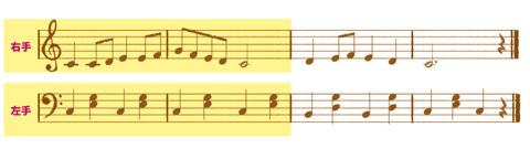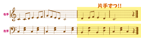 ④ 右手も左手も2小節弾けるようになったら、両手で練習します