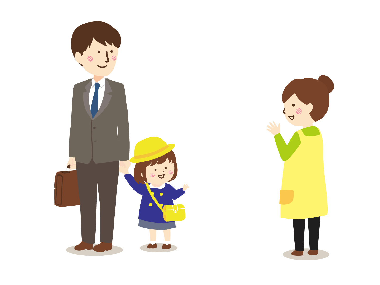 子どもの送り迎えの際はもちろん、園内ですれ違うときや玄関で会ったときなど、「おはようございます」「いってらっしゃい」「おかえりなさい」など、一言で挨拶をしましょう。