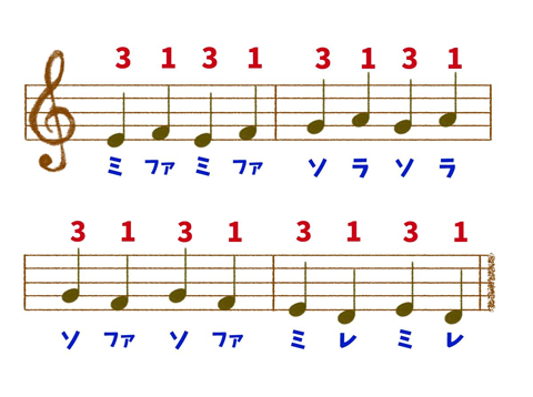 ※中指を鍵盤から離してしまうと、音が切れてしまうので注意しましょう。
